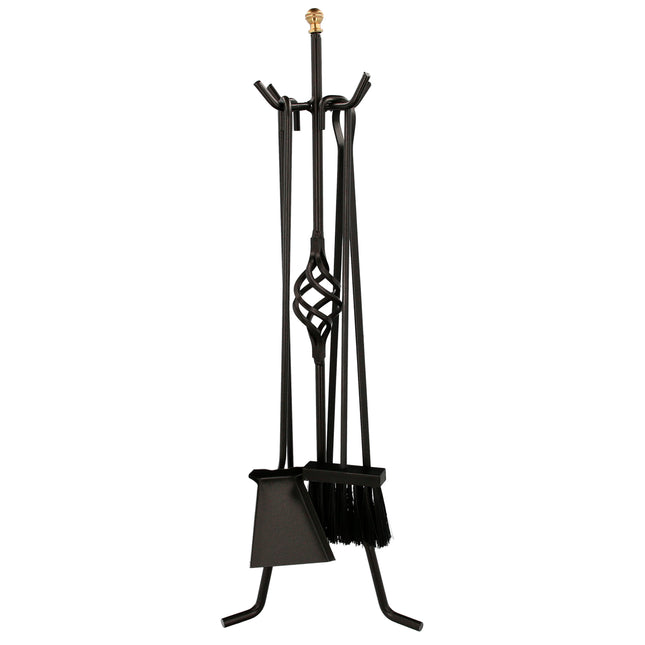 Juego Atizadores 5 Piezas - Medida soporte: 25x70 (Alt.) cm.- El juego incluye:> Soporte con capacidad para 4 utensilios, fabricado en hierro forjado. Pintado en color negro.> Cepillo, Mango realizado en hierro forjado. Celdas realizadas en polipropileno. Ideal para recoger las cenizas y suciedad que se generan alrededor de la chimenea, > Recogedor, fabricado en hierro forjado. Pintado en color negro. Ideal para recoger las cenizas y ascuas que se generan alrededor de la chimenea> Atizador fabricado en hierro forjado. Pintado en color negro. Ideal para mover o romper troncos, remover ascuas, etc.> Pinzas fabricado en hierro forjado. Pintado en color negro. Ideal para mover y colocar los troncos en la forma deseada.- Todo el juego está realzizado en hierro forjado.- Con este juego de utensilios de chimenea dispone de los elemetos necesarios para disfrutar de su chimenea.- Articulo conocido como juego atizadores, accesorios de chimenea, juego herramientos chimenea, juego utensilios chimenea cepillo chimenea, recogedor chimenea, atizador chimenea, pinzas chiminea, set chimenea, accesorios chimenea, etc.