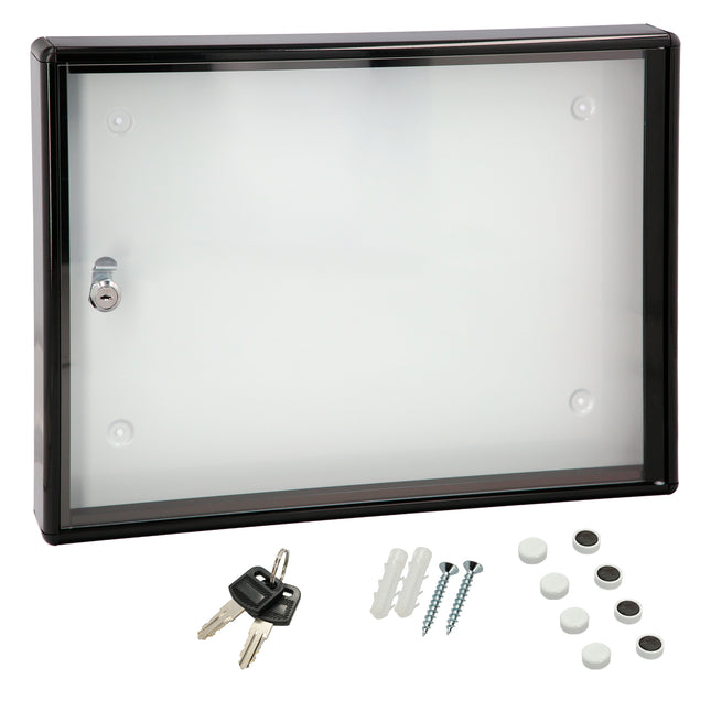 Tablon anuncios magnético de la marca WOLFPACK LINEA PROFESIONAL. Medidas: 48x35x5 cm Con cristal protector Con cerradura Ideal para oficinas, comunidades, zonas deportivas, etc