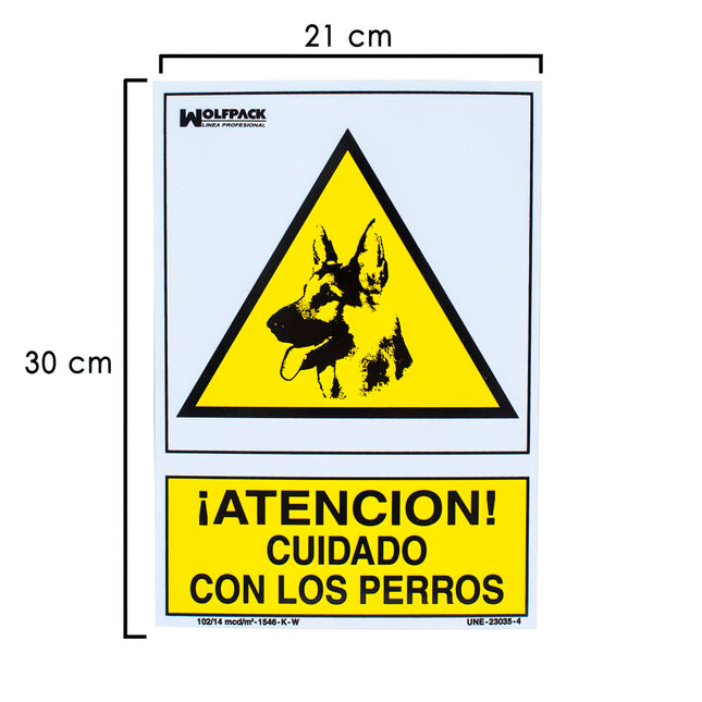 WOLFPACK LINEA PROFESIONAL Cartel Cuidado Con Los Perros 30x21 cm.