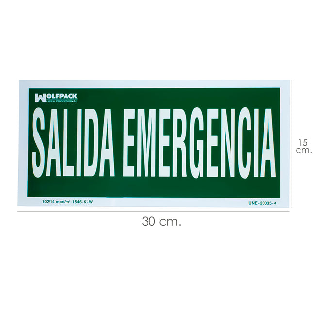 WOLFPACK LINEA PROFESIONAL Cartel Salida De Emergencia 15x30 cm.