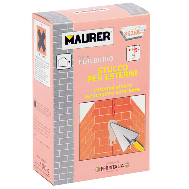Edil estuco exteriores maurer (caja 1 kilo) de la marca MAURER. Pequeñas reparaciones externas, alisadores, etc Uso interno y externo Ideal para trabajos de construcción