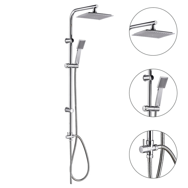 ORYX Columna Ducha Universal Multifuncional Completa Cuadrada, Acero inoxidable, Rociador Alcachofa Efecto Lluvia 22,5x22,5 cm.