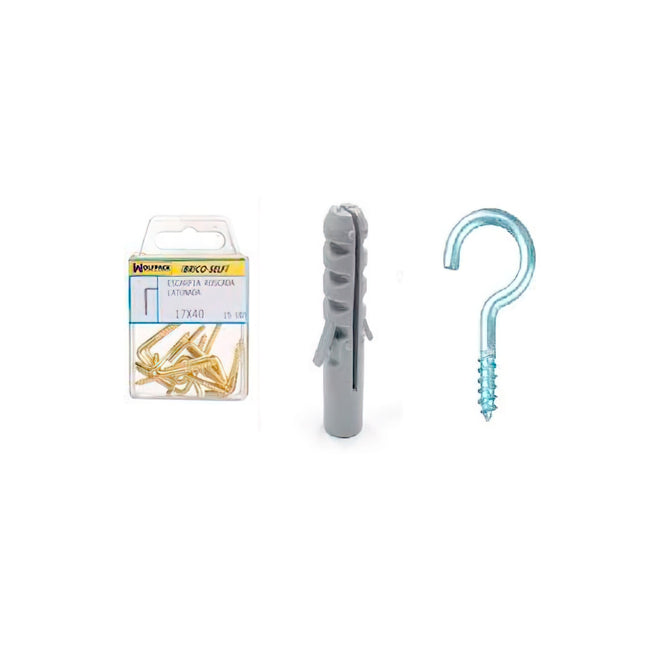 Tacos self, Bricoself, Brico-self taco nº 4 con hembrillas abiertas de la marca WOLFPACK LINEA PROFESIONAL. Útil para colgar elementos en la pared Medida: 17 x 40 mm Envase de 10 unidades Artículo también conocido como: cancamos Más información y guía de uso: Hembrillas y cáncamos roscados para crear puntos de anclaje en madera, pared o techo con seguridad. Este producto pertenece a la categoría Hembrillas y Cáncamos de VicHome, donde encontrarás productos similares y sus variantes.