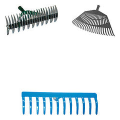• Rastrillos, escarificadores y mangos universales compatibles con distintos cabezales.
