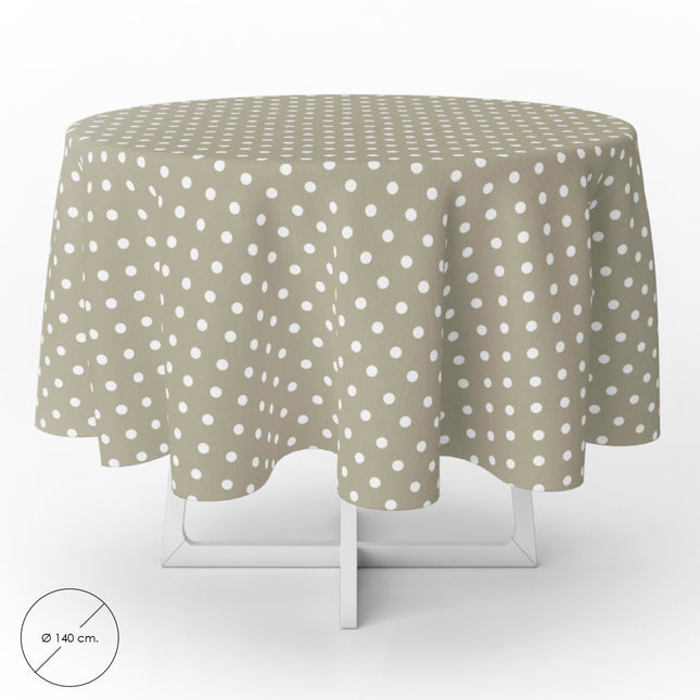 ORYX Mantel Hule Redondo Topos Beige Impermeable Antimanchas PVC Ø140 cm. Uso Interior y Exterior