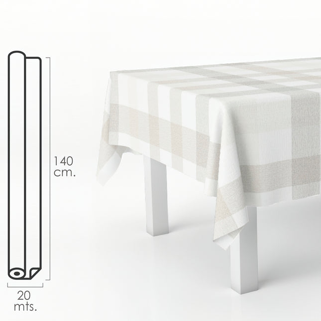 ORYX Mantel Hule Rectangular Cuadros Beis. Impermeable Antimanchas PVC 140 cm. x 20 metros. Rollo Recortable. Interior y Exterior