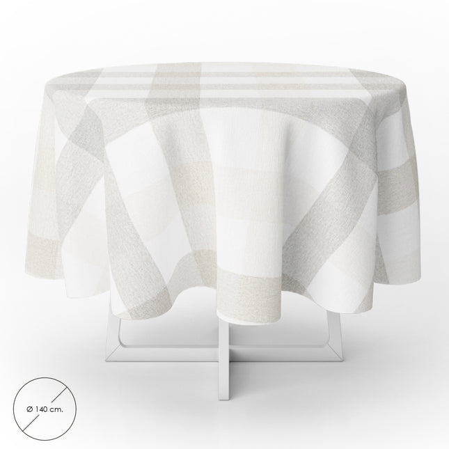 ORYX Mantel Hule Redondo Cuadros Beige Impermeable Antimanchas PVC Ø 140 cm. Uso Interior y Exterior