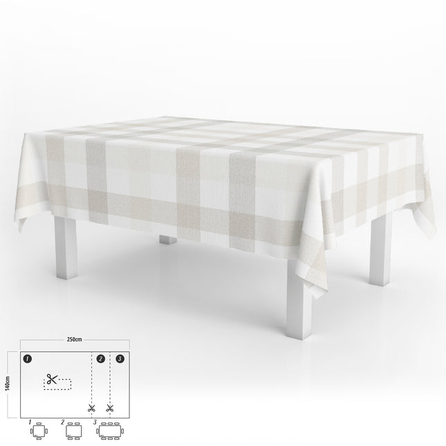 ORYX Mantel Hule Rectangular Cuadros Beige Impermeable Antimanchas PVC 140x250 cm. Recortable Uso Interior y Exterior