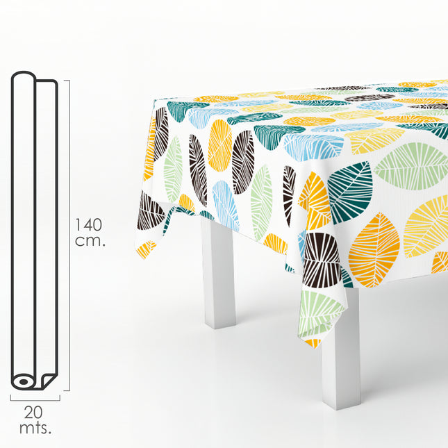ORYX Mantel Hule Rectangular Hojas Colores. Impermeable Antimanchas PVC 140 cm. x 20 metros. Rollo Recortable. Interior y Exterior
