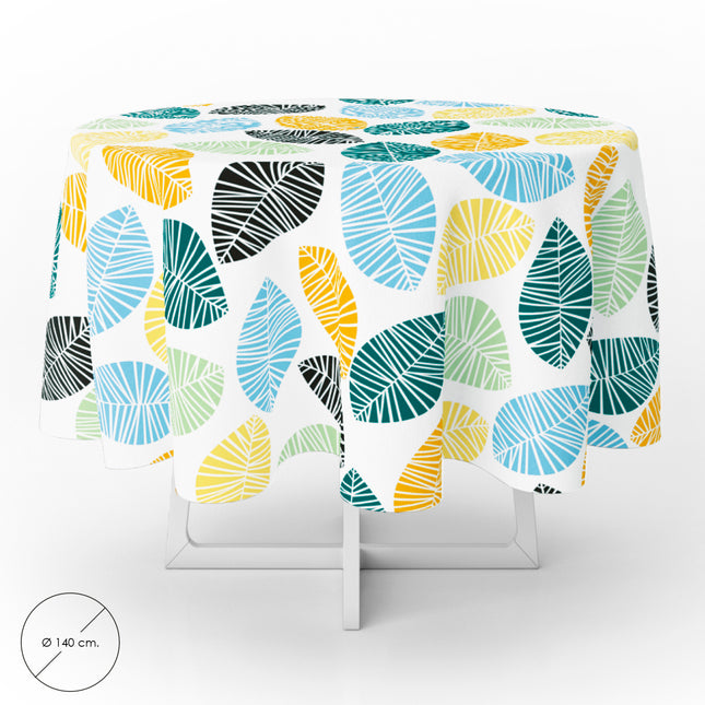 ORYX Mantel Hule Redondo Hojas Colores Impermeable Antimanchas PVC Ø 140 cm. Uso Interior y Exterior