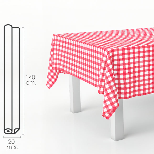 ORYX Mantel Hule Rectangular Cuadros Rojos. Impermeable Antimanchas PVC 140 cm. x 20 metros. Rollo Recortable. Interior y Exterior