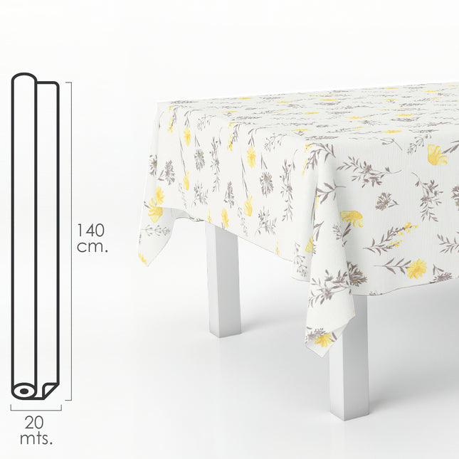 ORYX Mantel Hule Rectangular Flores Amarillas. Impermeable Antimanchas PVC 140 cm. x 20 metros. Rollo Recortable. Interior y Exterior