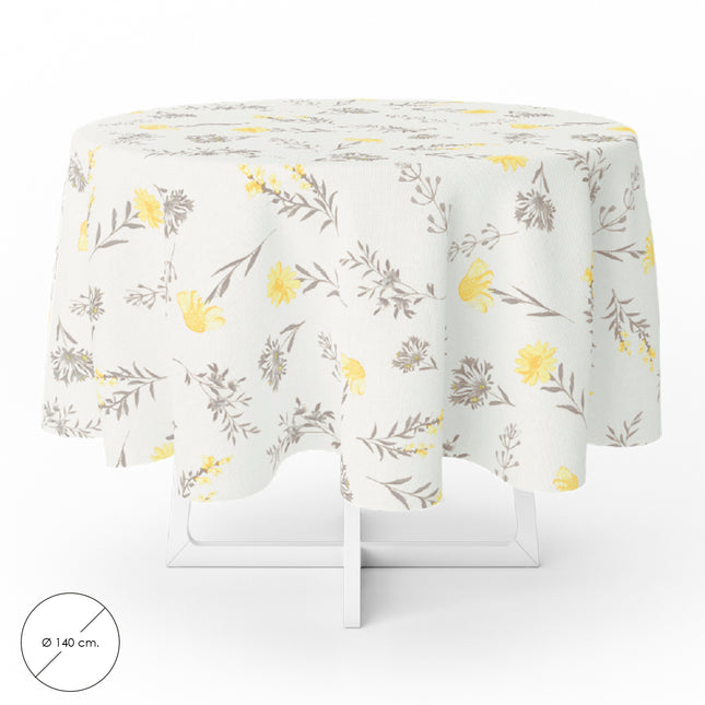 ORYX Mantel Hule Redondo Flores Amarillas Impermeable Antimanchas PVC Ø140 cm. Uso Interior y Exterior