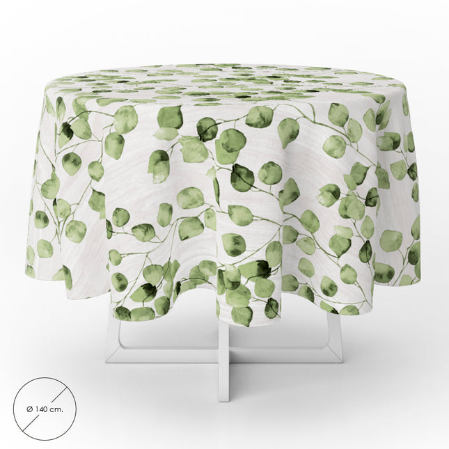 ORYX Mantel Hule Redondo Hojas Verdes Impermeable Antimanchas PVC Ø140 cm. Uso Interior y Exterior