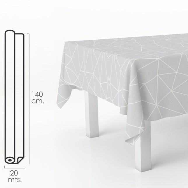 ORYX Mantel Hule Rectangular Geometrico Gris. Impermeable Antimanchas PVC 140 cm. x 20 metros. Rollo Recortable. Interior y Exterior