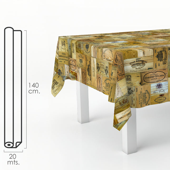Mantel Hule Rollo 140 cm. x 20 metros. Tablones Vino- Medidas: Rollo de 140 cm. x 20 metros.- Mantel Hule estampado en color madera imitando una composición cajas de vino. Diseño moderno y elegante para cualquier ocasión. - Se puede cortar o ajustar fácilmente a cualquier medida, para adaptarlo a cualquier tipo de mesa, superficie o manualidad. - Protege la mesa de salpicaduras, derrames, arañazos y antimanchas. - Es impermeable y antideslizante. - Resistente y duradero, adecuado tanto para exteriores como interiores. - Fabricado en PVC y con revestimiento de fieltro suave en la parte trasera. - Puede limpiarse fácilmente con un paño húmedo. - No apto para uso en lavadora, secadora o plancha. - Ideal para mesas de salón, cocina, comedor, terraza o jardín. - Perfecto para proteger muebles, mesas o superficies, tanto dentro como fuera de casa. - Para reducir las arrugas del mantel, con un secador de mano aplicar calor con una separación de 15 cm. durante 20 segundos.- Articulo también conocido como Hule, hules antimanchas, hule anti manchas,mantel antimanchas, mantel anti manchas, mantel cocina, mantel protector, cobertor mesas, cubremesas, hule cocina, etc.