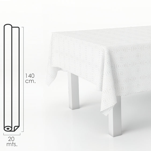 Mantel Hule Muletón Rollo 140 cm. x 20 metros. Blanco- Medidas: Rollo de 140 cm. x 20 metros.- Mantel Hule Muletón en color blanco y estampado en formas geométricas. Diseño moderno y elegante para cualquier ocasión. - Se puede cortar o ajustar fácilmente a cualquier medida, para adaptarlo a cualquier tipo de mesa, superficie o manualidad. - Protege la mesa de salpicaduras, derrames, arañazos y antimanchas. - Es impermeable y antideslizante. - Resistente y duradero, adecuado tanto para exteriores como interiores. - Fabricado en PVC y con revestimiento de fieltro suave en la parte trasera. - Puede limpiarse fácilmente con un paño húmedo. - No apto para uso en lavadora, secadora o plancha. - Ideal para mesas de salón, cocina, comedor, terraza o jardín. - Perfecto para proteger muebles, mesas o superficies, tanto dentro como fuera de casa. - Para reducir las arrugas del mantel, con un secador de mano aplicar calor con una separación de 15 cm. durante 20 segundos.- Articulo también conocido como Hule, hules antimanchas, hule anti manchas,mantel antimanchas, mantel anti manchas, mantel cocina, mantel protector, cobertor mesas, cubremesas, hule cocina, etc.