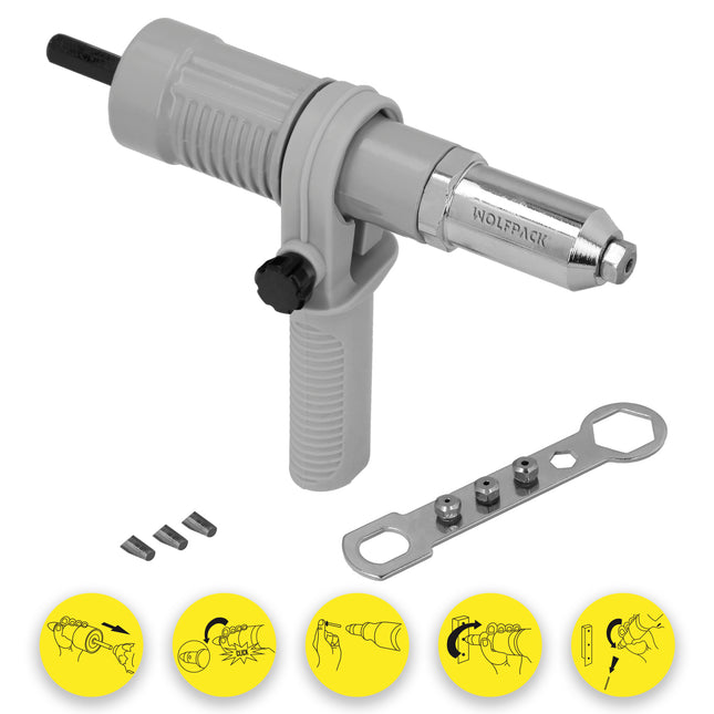 WOLFPACK LINEA PROFESIONAL Kit Remachadora Para Taladro