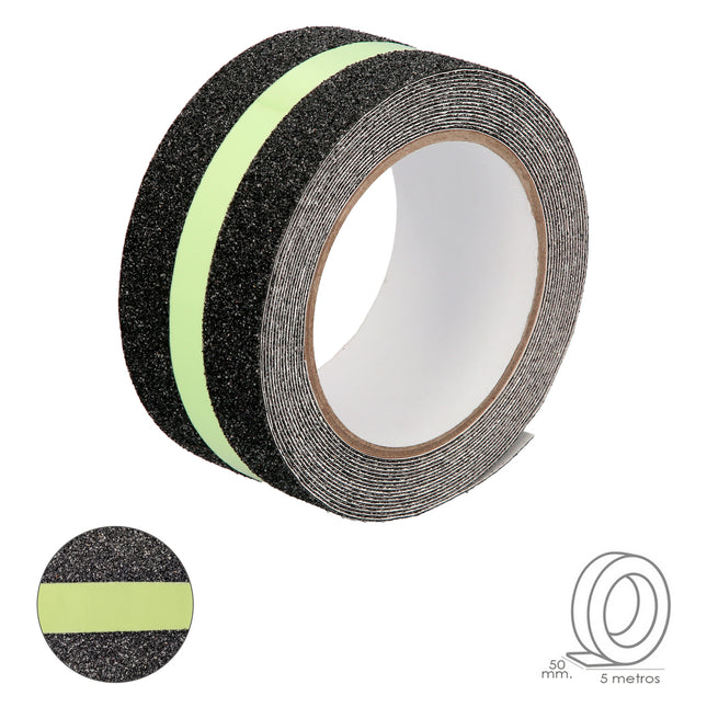 Cinta Antideslizante Fluorescente de la marca WOLFPACK LINEA PROFESIONAL. Longitud x ancho: 50 mm x 5 metros Grosor: 0. 8 mm La superficie de la cinta antideslizante está hecha de papel de arena, que tiene propiedades adhesivas y resistentes al desgaste, lo que reduce el riesgo de deslizamiento en zonas como escaleras, rampas, etc Cinta diseñada con una franjar reflectante verde que puede brillar en la oscuridad o el humo La base PET puede soportar temperaturas extremadamente altas incluso en verano o invierno, y todavía es difícil de agrietar o pelar Uso doméstico Más información y guía de uso: Señalización para obra y entorno laboral: carteles, vinilos y balizas que mejoran la seguridad y la información. Este producto pertenece a la categoría Balizas señalización y cinta seguridad de VicHome, donde encontrarás productos similares y sus variantes.