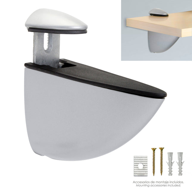 Emuca Emuca Azor set of supports for wooden or glass shelves, Plastic and Zamak, Painted aluminium