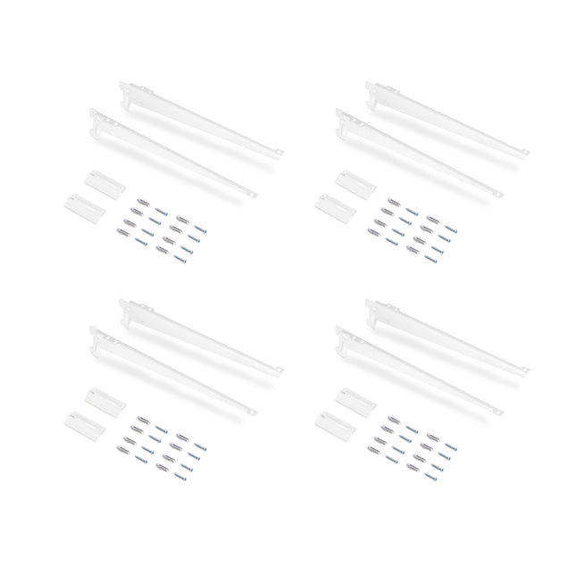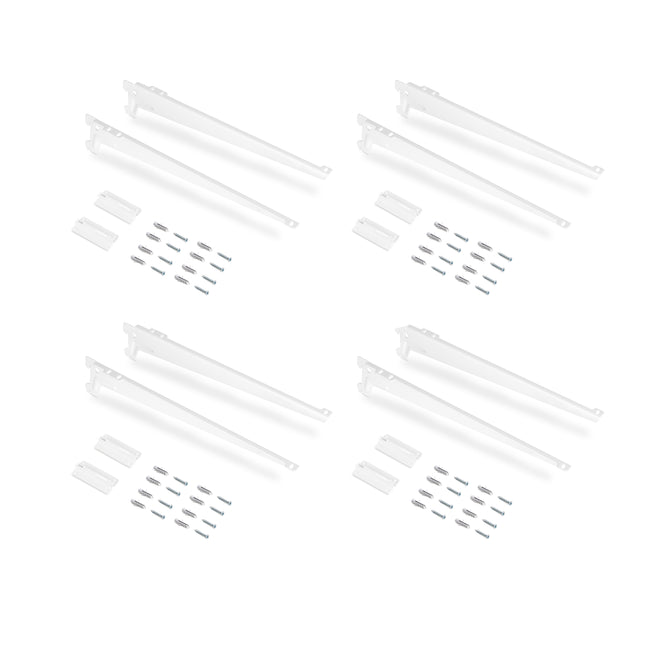 Accessory kit for making custom-made shelves fixed to the wall. They are ideal for equipping the interior of wardrobes, dressing rooms, laundry rooms or pantries. They can be combined with Jagmet accessories to create a wide range of compositions. This kit consists of eight fixing plates and four sets of shelf brackets (right and left) designed for the installation of four wooden shelves. Screws and wall plugs for wall mounting are also included.