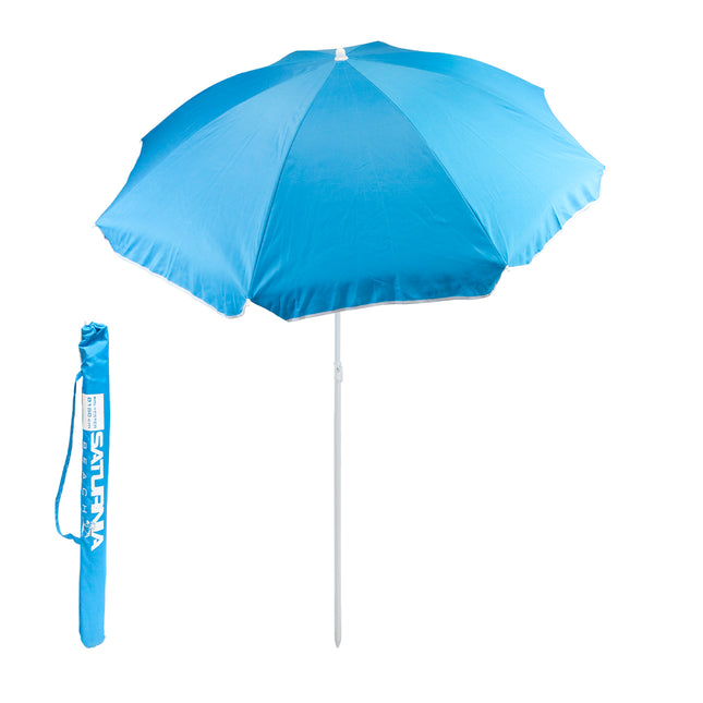 SATURNIA Beach Umbrella Steel / Polyester Ø 180 cm. Blue. Fiberglass Ribs.