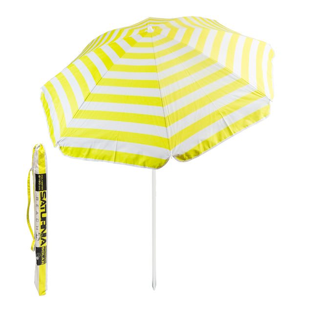 SATURNIA Beach Umbrella Aluminum / Polyester Ø 180 cm. Yellow and White. Fiberglass Ribs. UV Protection.