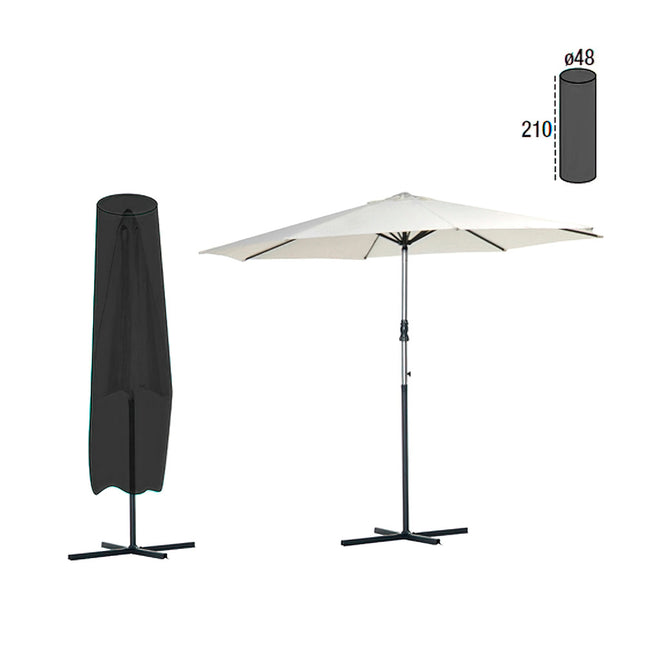 Umbrella cover. - Measurements: diameter 48x210cm. - Cover made of 100 gr/m² polyethylene. - With aluminum eyelets and nylon rope for fixing. - Ideal for protecting furniture. - Green color. - Article known as: protective cover, cover.