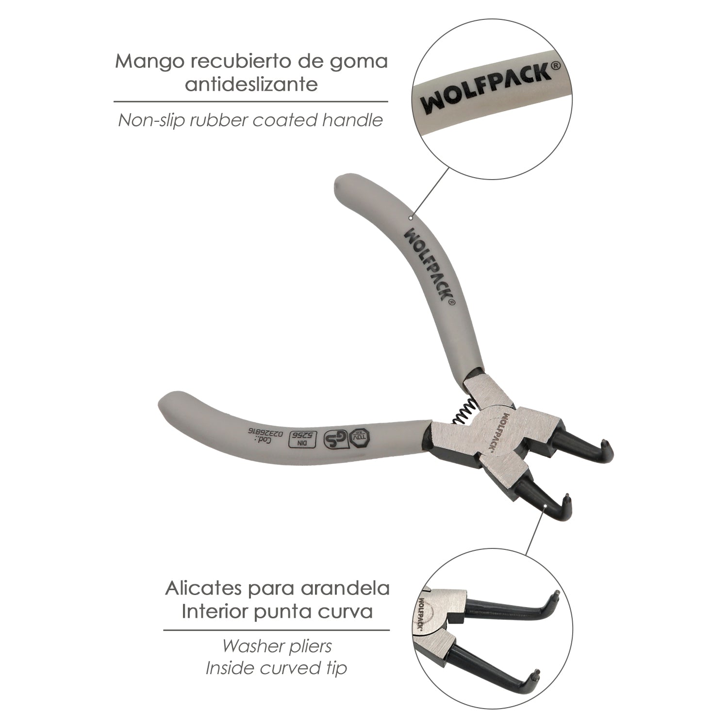 Curved Internal Washer Pliers 125 mm. DIN 5254 Steel. Snap Rings, Retaining Rings, Circlips Washers