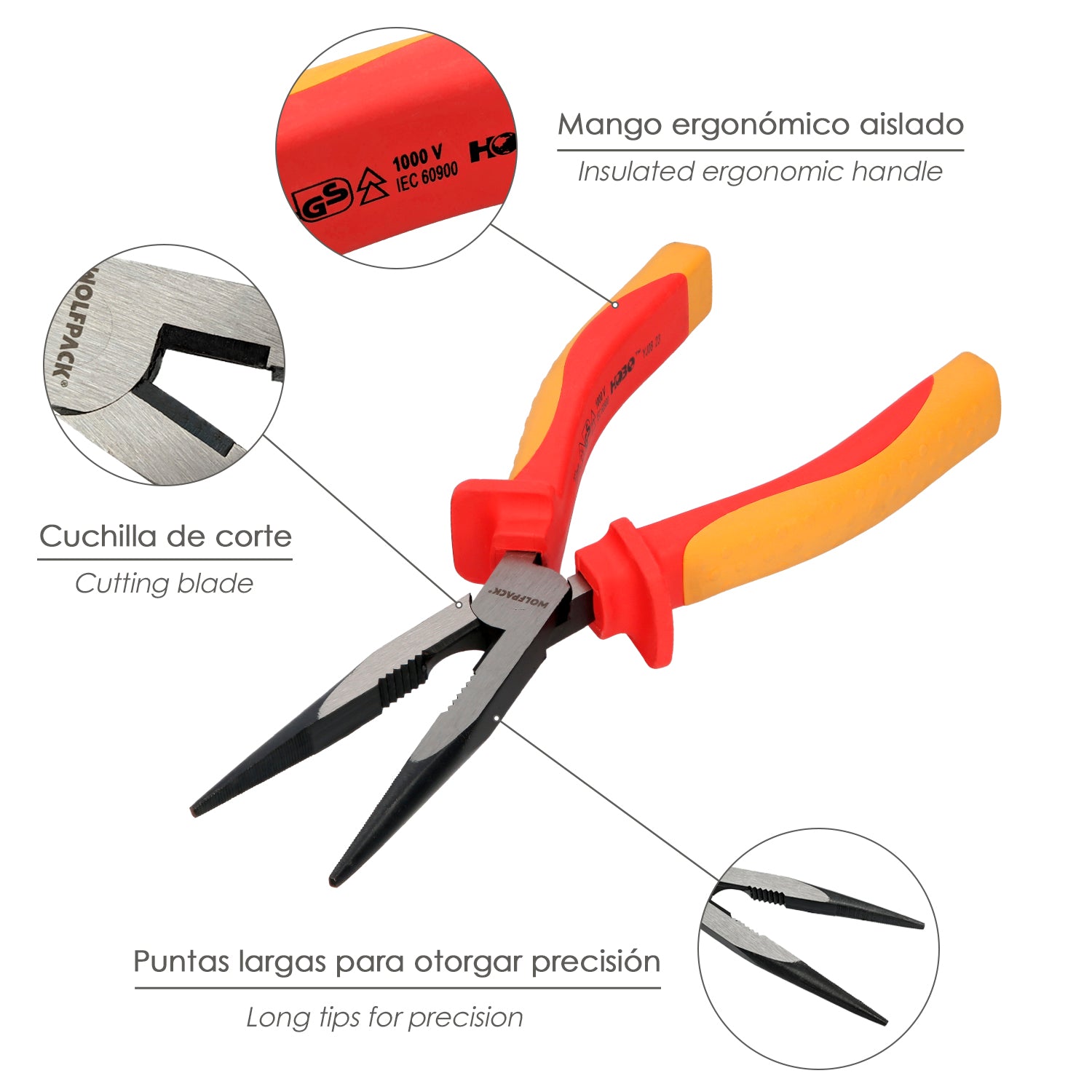 Straight Nose Pliers 200 mm. Insulated Handles Chrome Vanadium Steel Wire Stripper, Cable Cutter, Cable Stripper