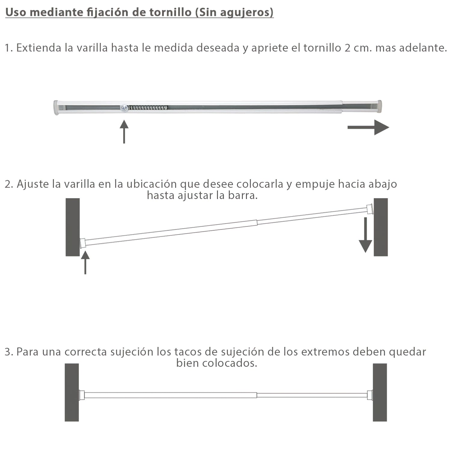 Extendable Curtain Rod 148.5/240 cm. With Adjustable Pressure Spring (1 Piece)