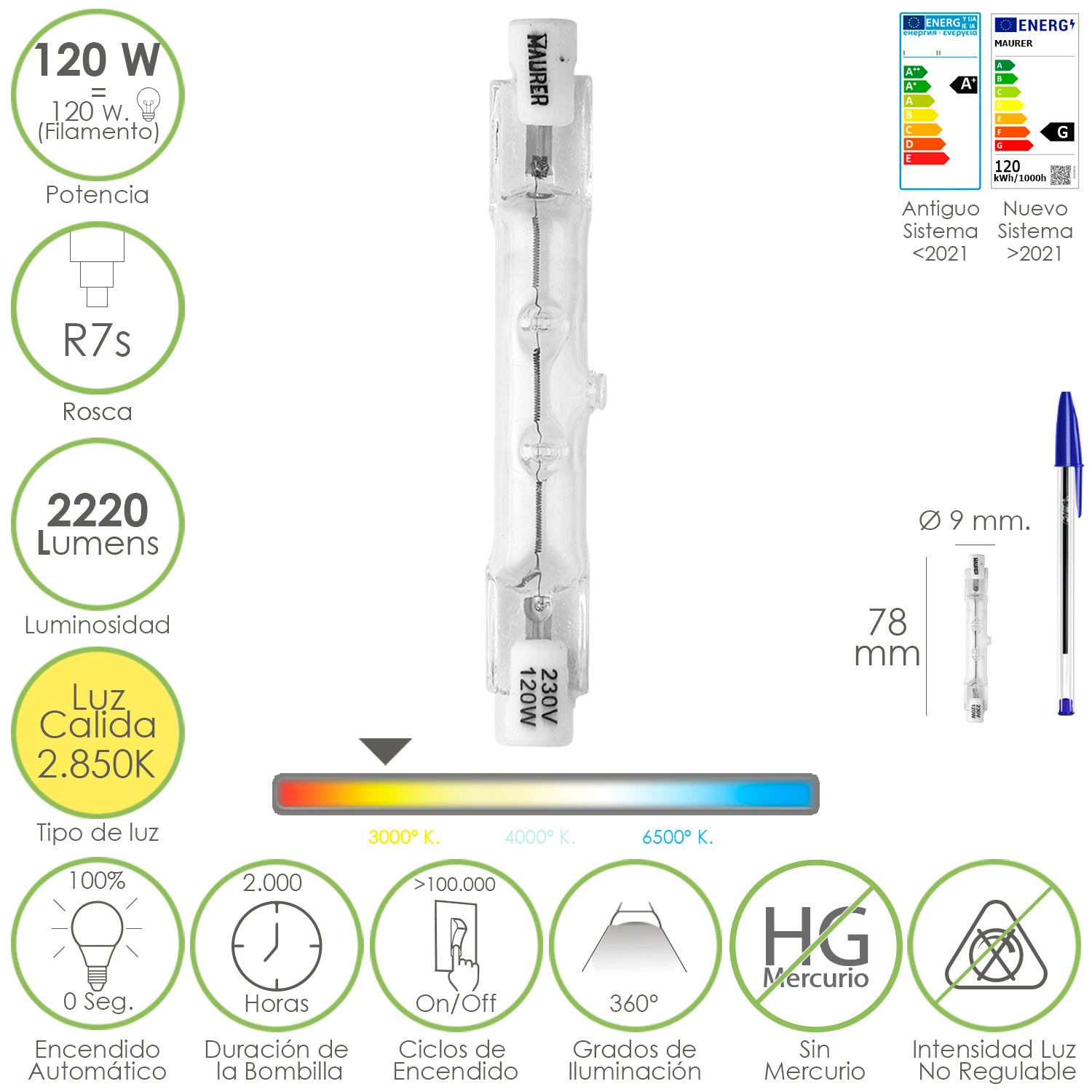 Halogen Bulb for R7S Screw Spotlights. 120 Watt. 2220 Lumens. Warm Light (2850º K)