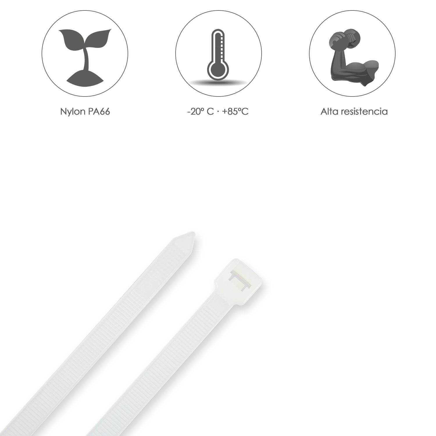 100% Nylon Cable Tie. White / Natural Color 3.5 x 200 mm. 100 Pieces. Plastic Clamp, Cable Organizer, High Resistance