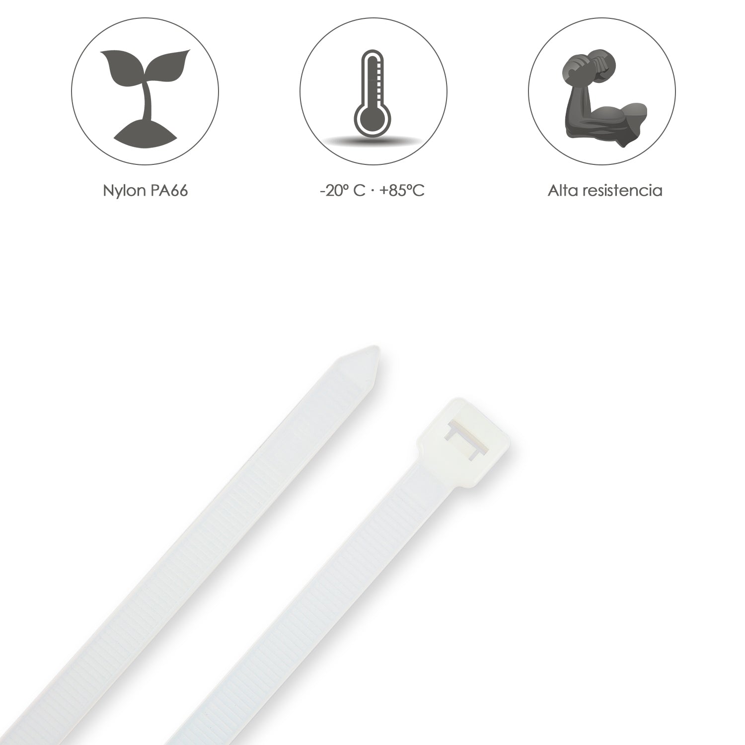 100% Nylon Cable Tie. White / Natural Color 7.8 x 540 mm. 100 Pieces. Plastic Clamp, Cable Organizer, High Resistance