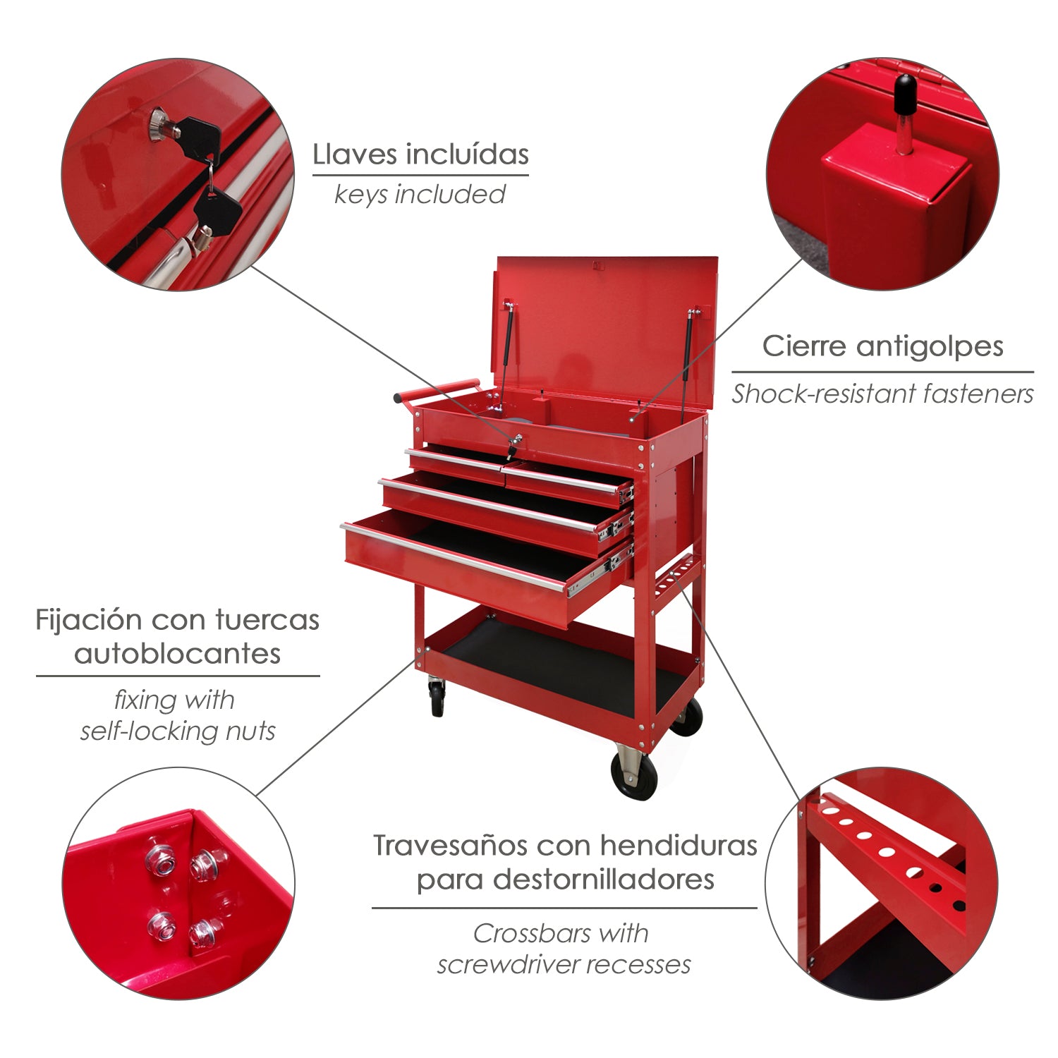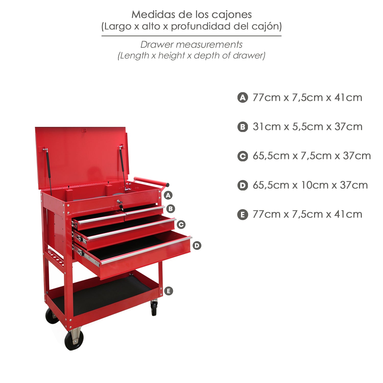 Metal Tool Cart 86x44x99 cm. with 4 Drawers and 2 Trays