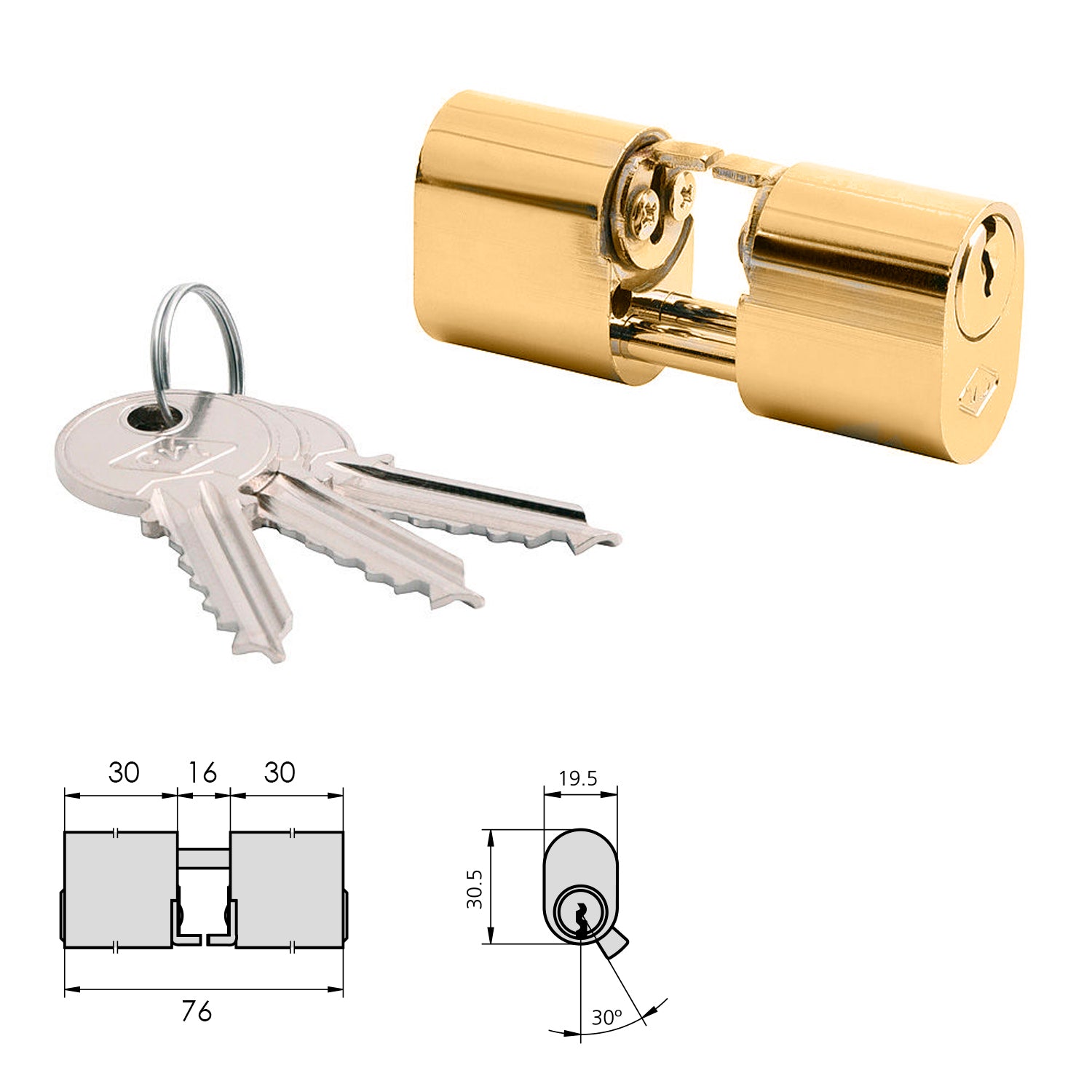 CVL 5979 Cylinder / 30x30 / Oval Polished Brass Cams and Rods Double Cylinder