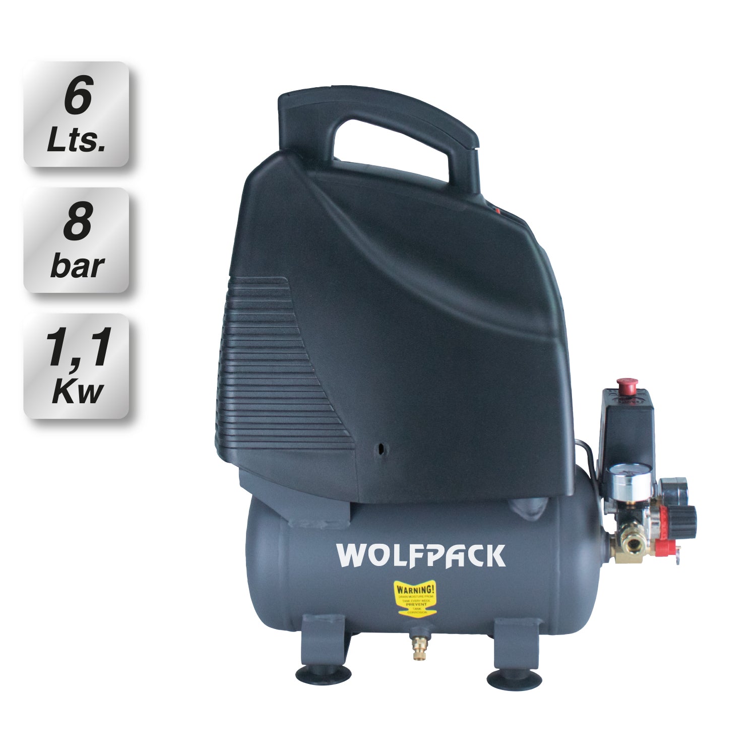 Wolfpack Air Compressor 6 Liters / 8 Bars / 1.1 Kw - 1.5 HP Oil-Free