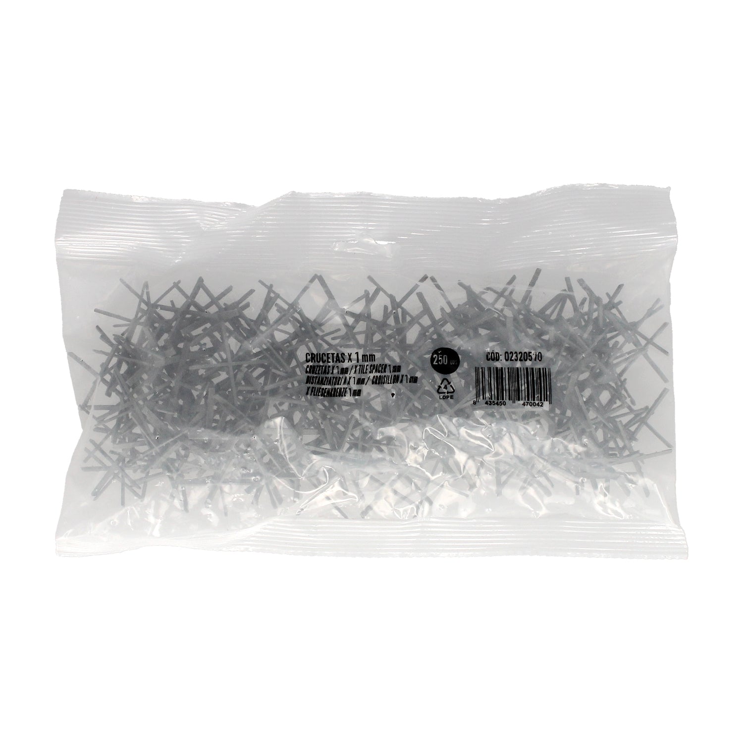 Cross Spacers / Spacers for Ceramic Floors 1 mm. (Bag of 250 Pieces)