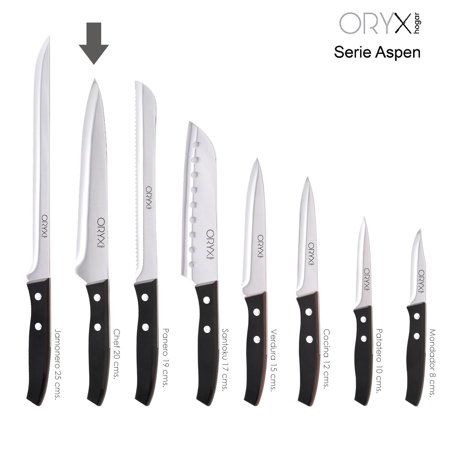 Aspen Cook's / Chef's Knife Stainless Steel Blade 20 cm. Black