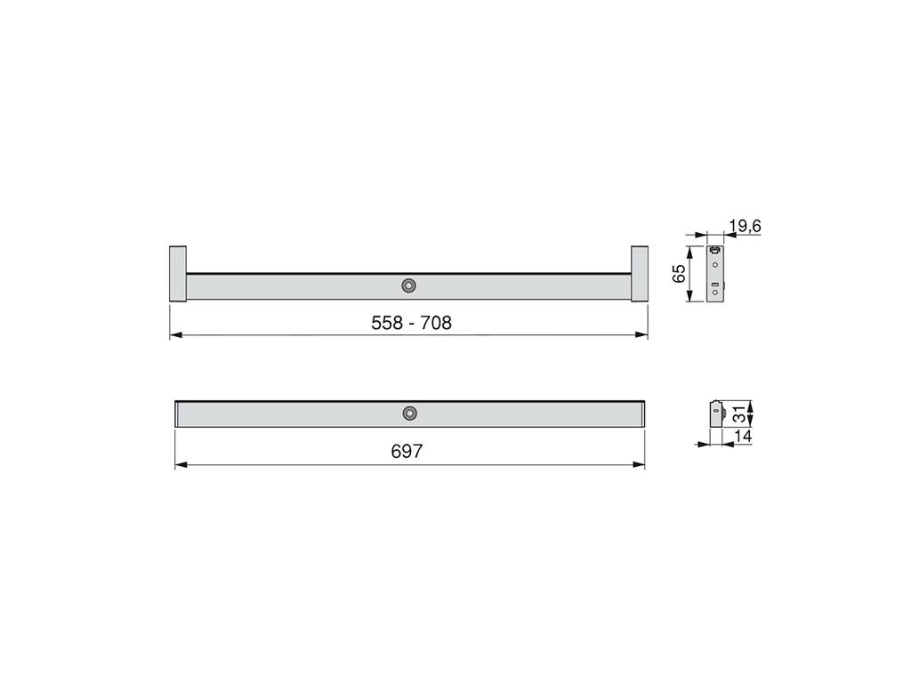 Emuca Polux LED light closet rail with motion sensor (12V DC), L1.008mm, Plastic and Aluminum, Metallic gray