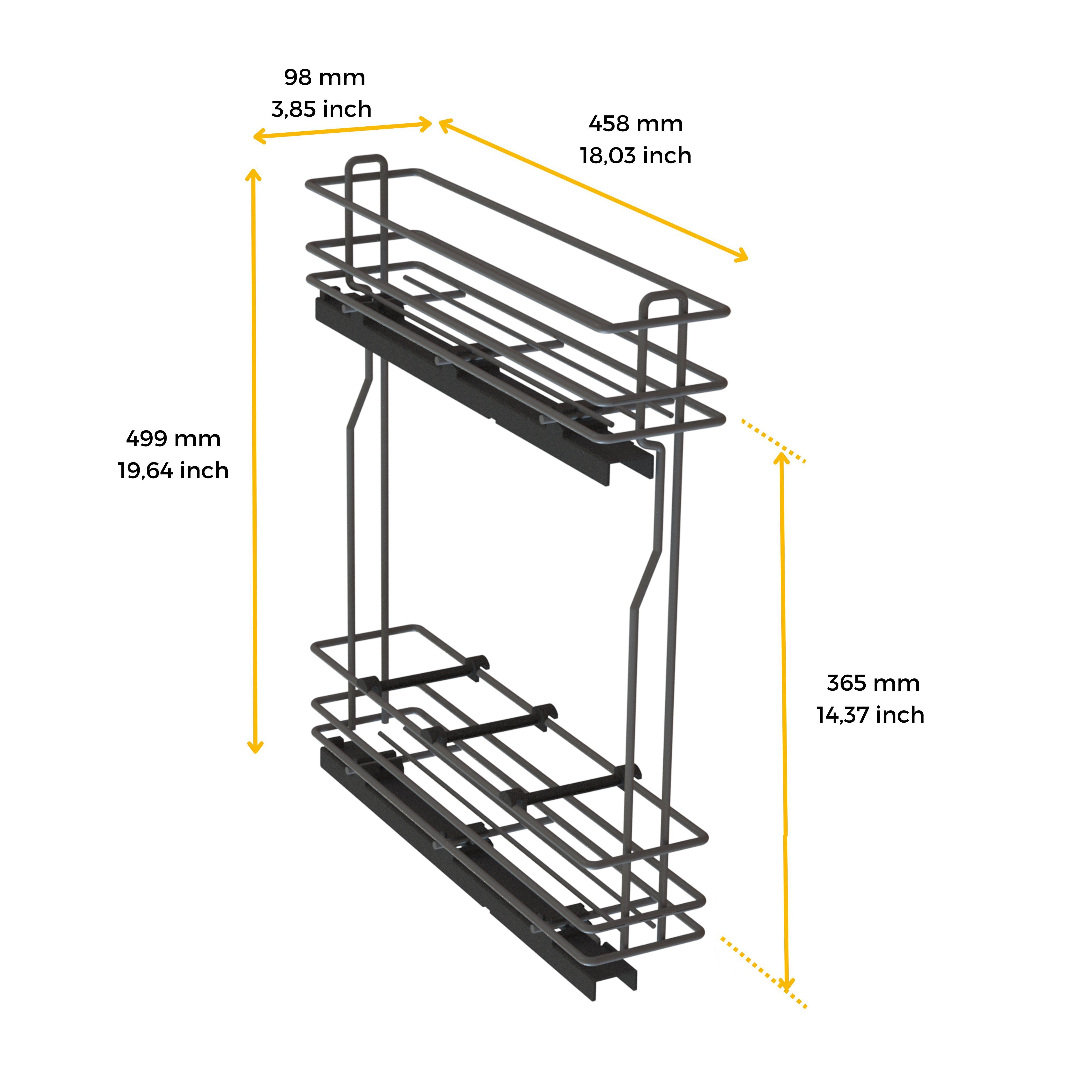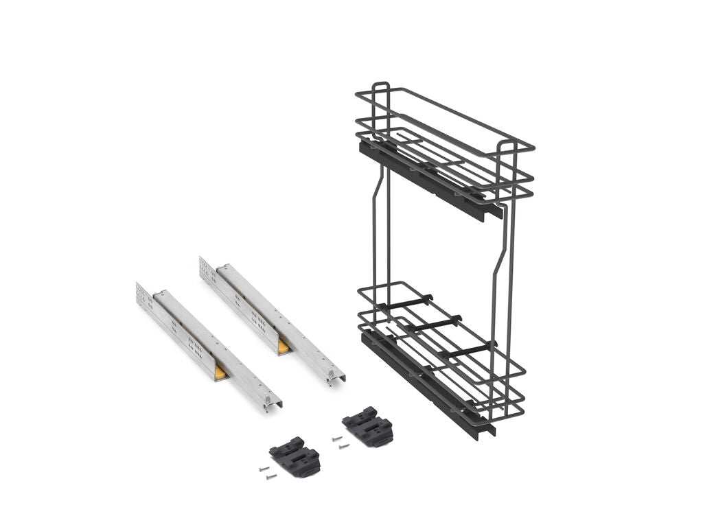 Emuca TitaneMax removable side bottle rack with soft close, 150mm module, Steel, Anthracite grey