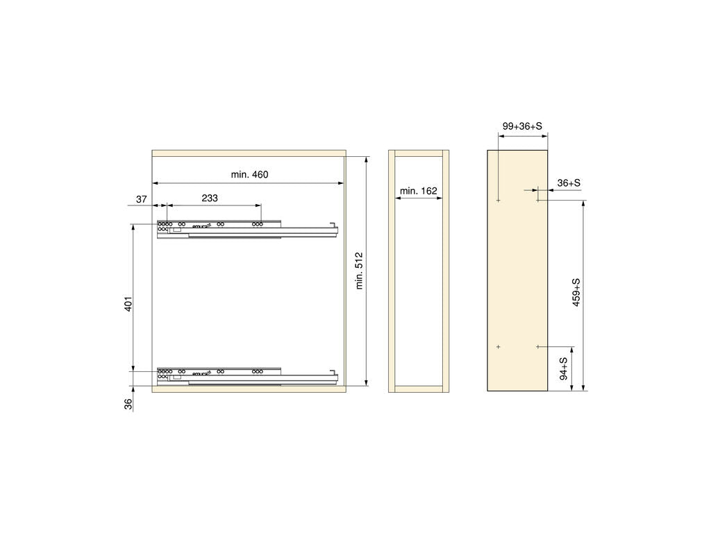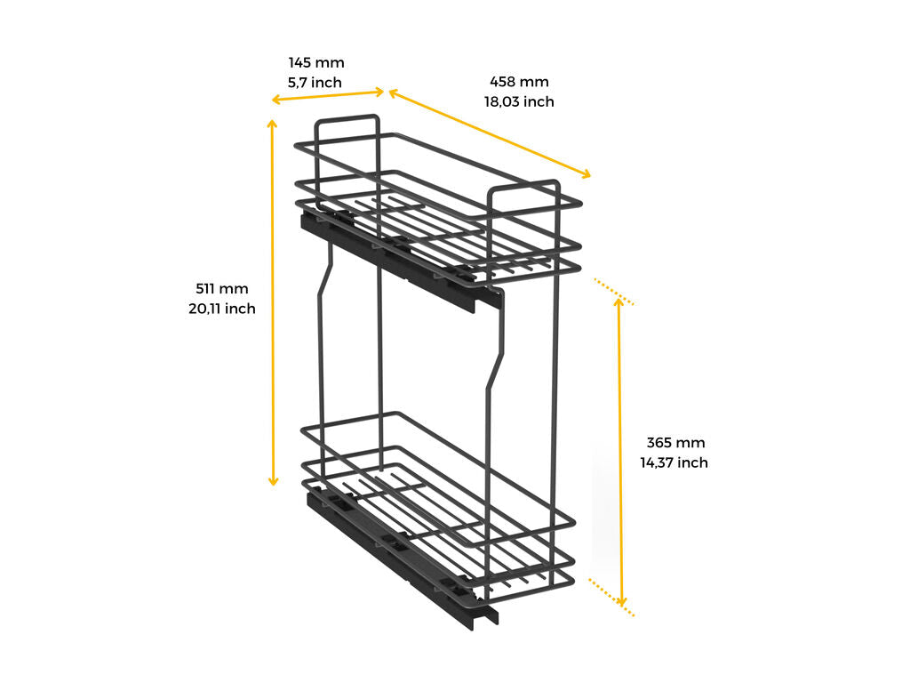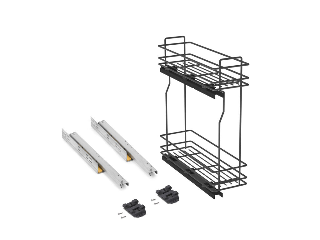 • Module 150mm, 200mm 1 removable bottle rack, set of full extension guides, mounting screws, basket spacers