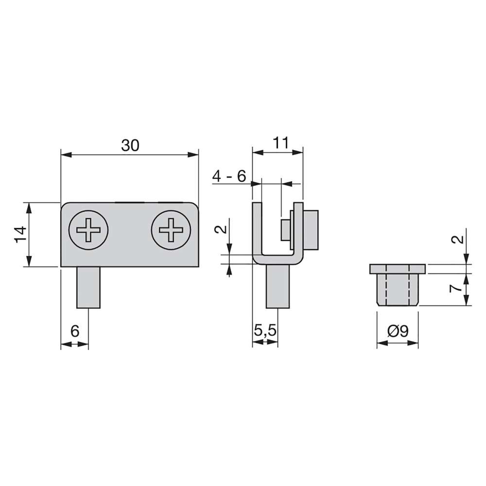 Emuca Set of interior hinges for glass doors, 4-6mm thick, Steel, Metallic grey