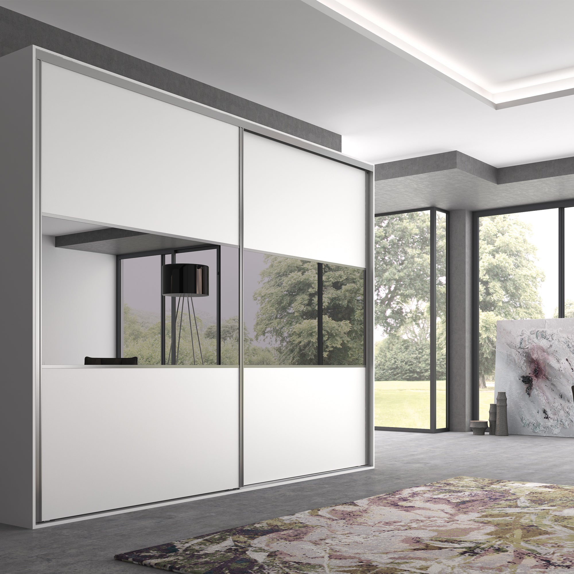 Emuca Hardware kit for 2 sliding doors and soft closing wardrobe Placard 90, Vall profile, 19mm thick, boards not included, Matt anodized