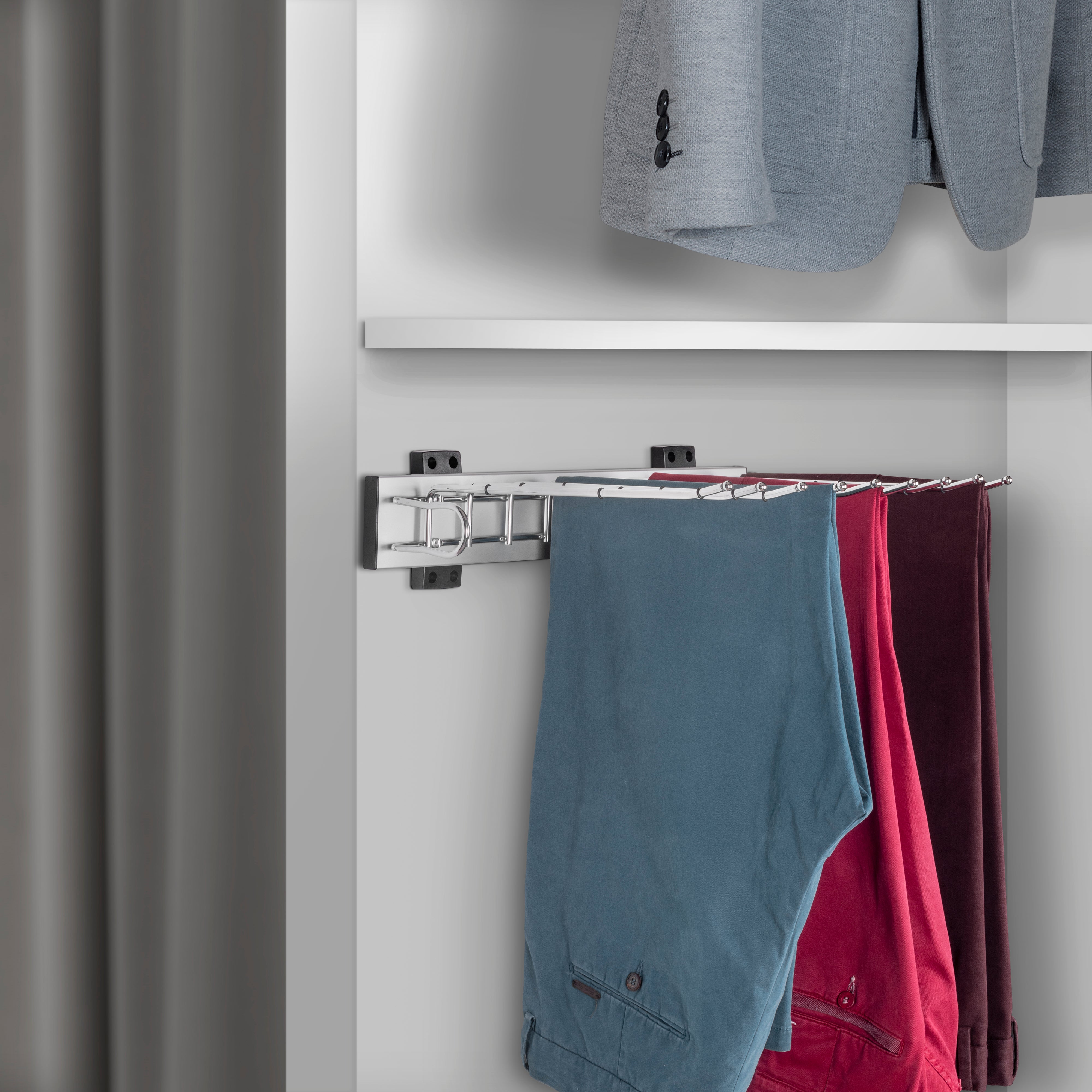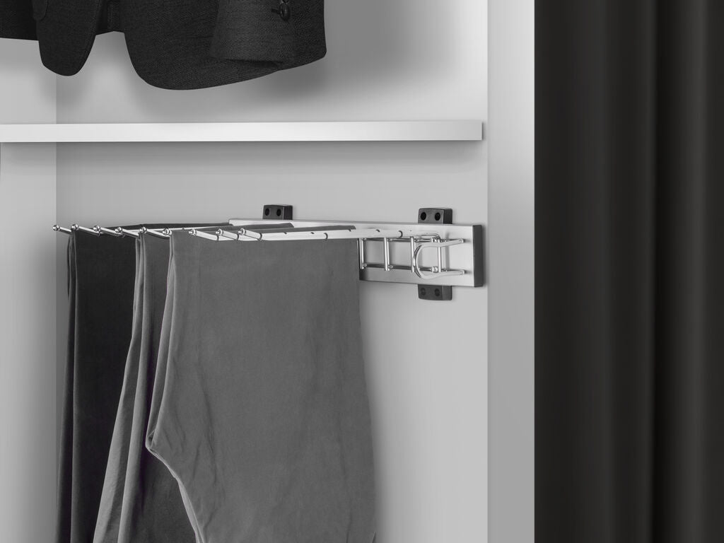 Emuca Side-mounted trouser rack for Self wardrobe, Left hand, Steel and Plastic and Aluminium, Chrome