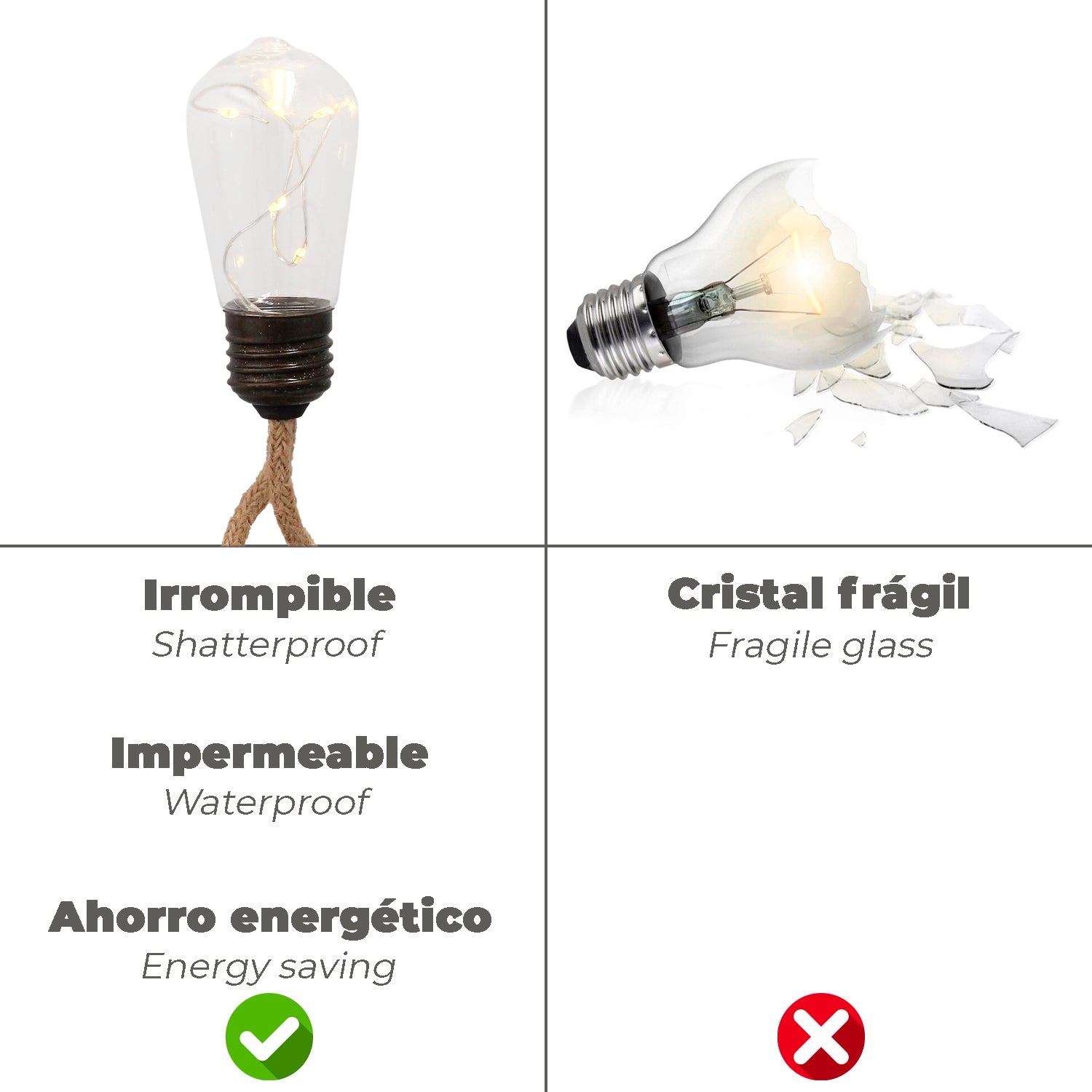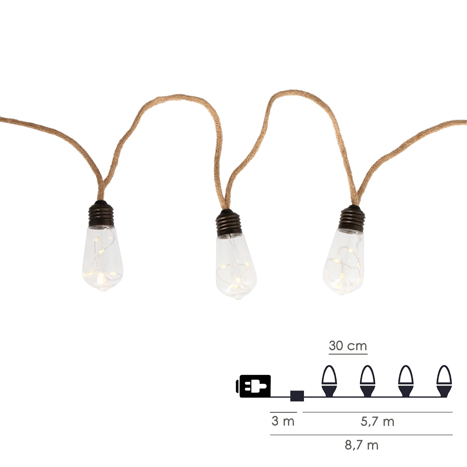 Garland 20 Transparent Bulbs 6 Meter Rope Protection Use Outdoors / Indoors IP44