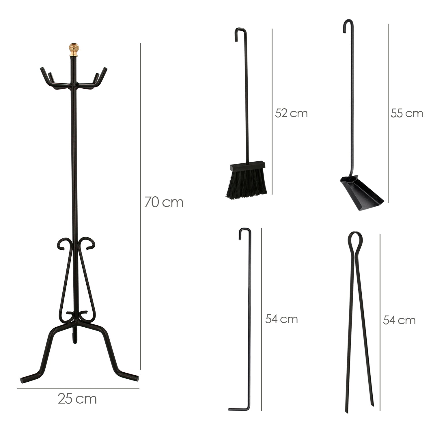 Forged Poker Set 5 Pieces 25x70 (H.) cm. Holder, Brush, Dustpan, Poker and Tongs. Wrought Iron