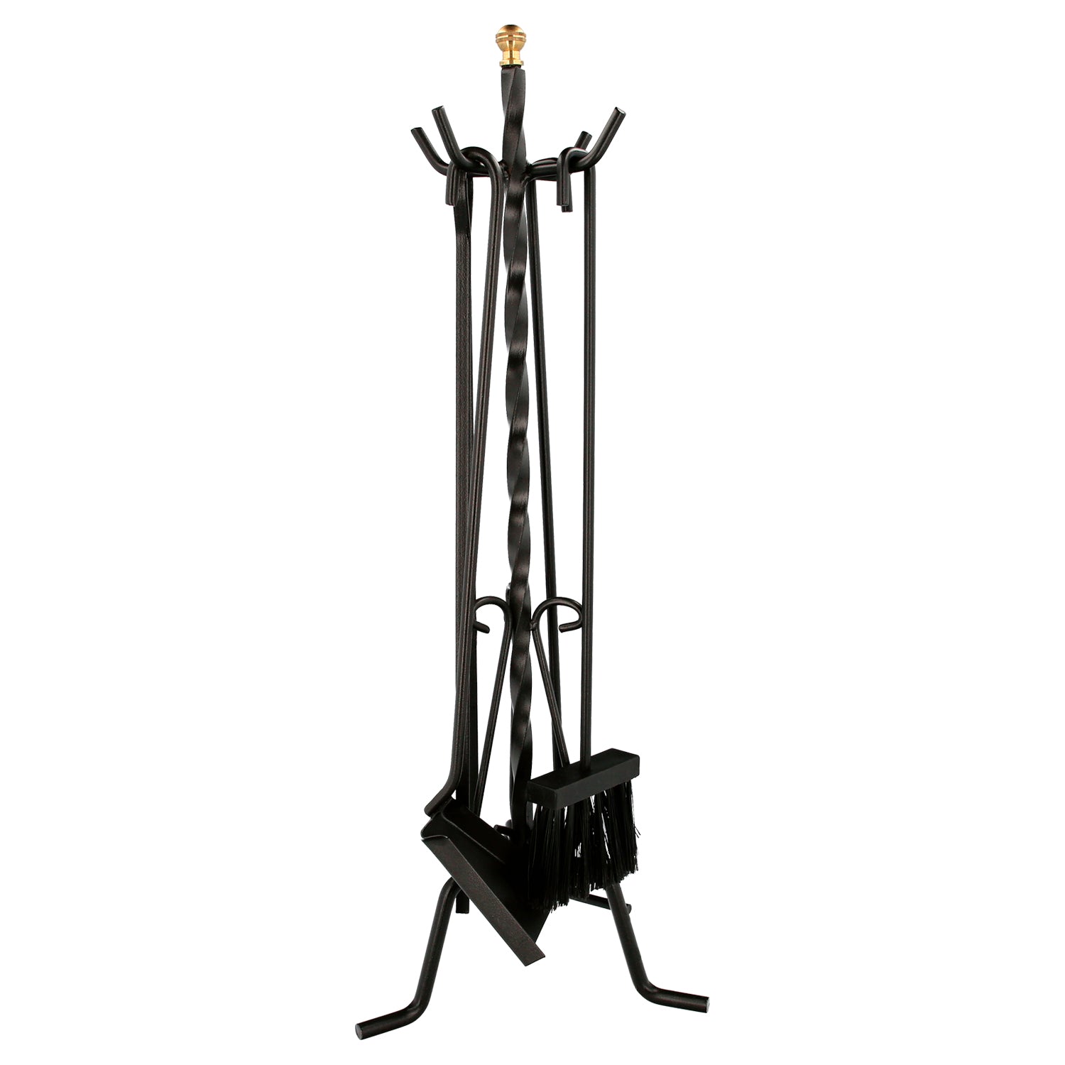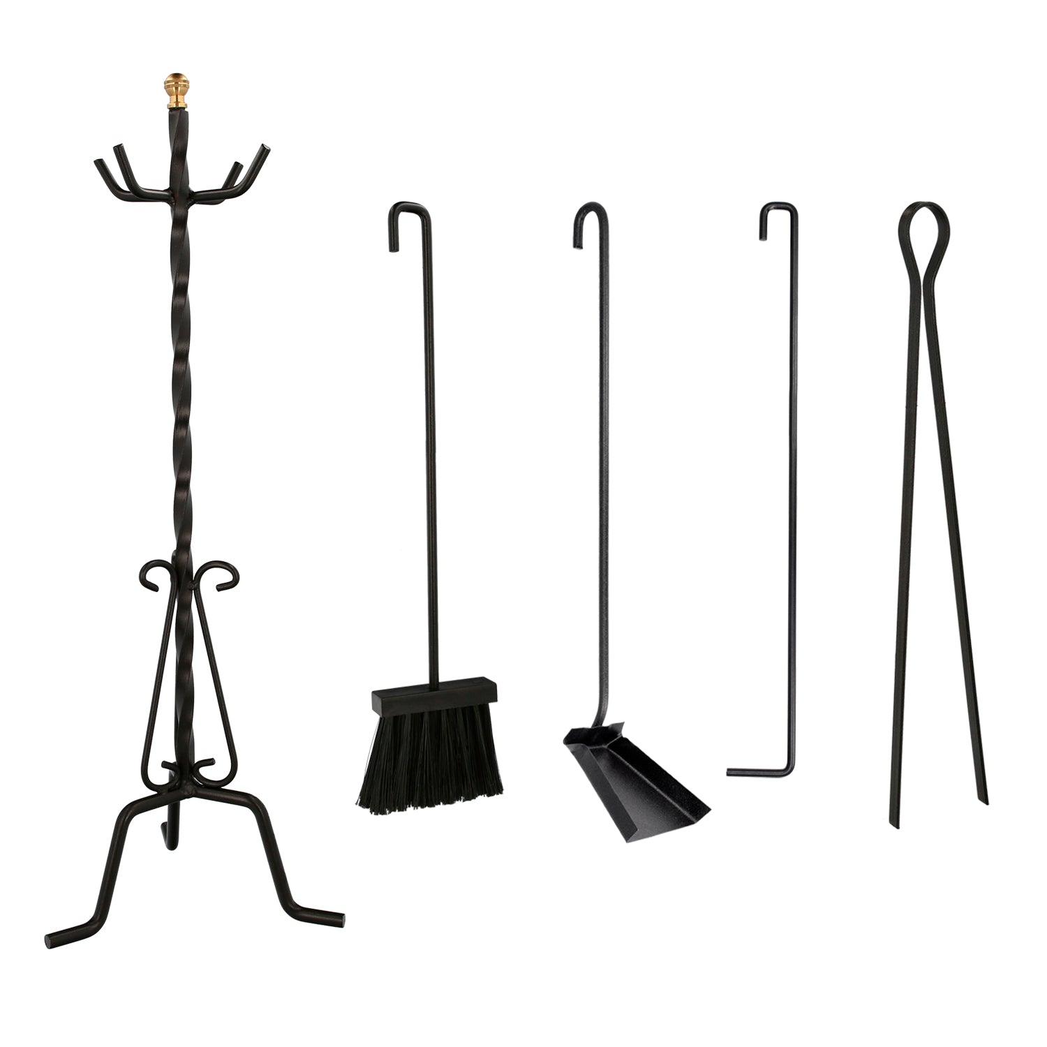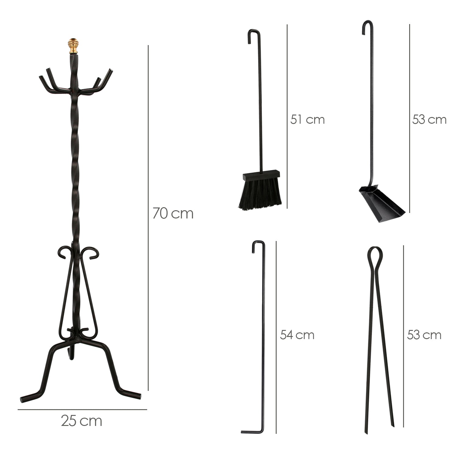 Forged Poker Set 5 Pieces 25x70 (H.) cm. Holder, Brush, Dustpan, Poker and Tongs. Wrought Iron