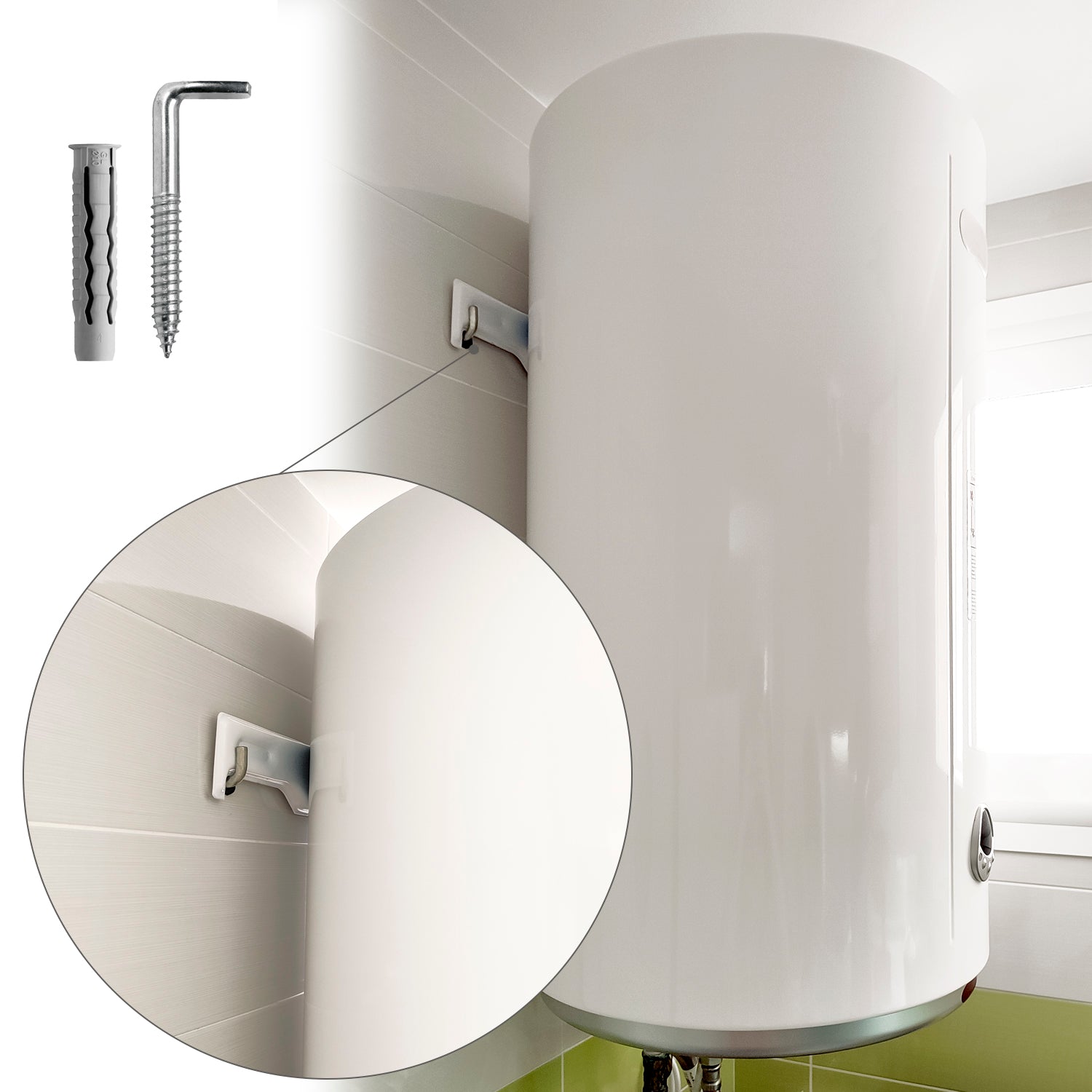 Sanitary Kit Hook With Ø 14 x 70 mm Plug. Fixing Water Heaters / Thermoses