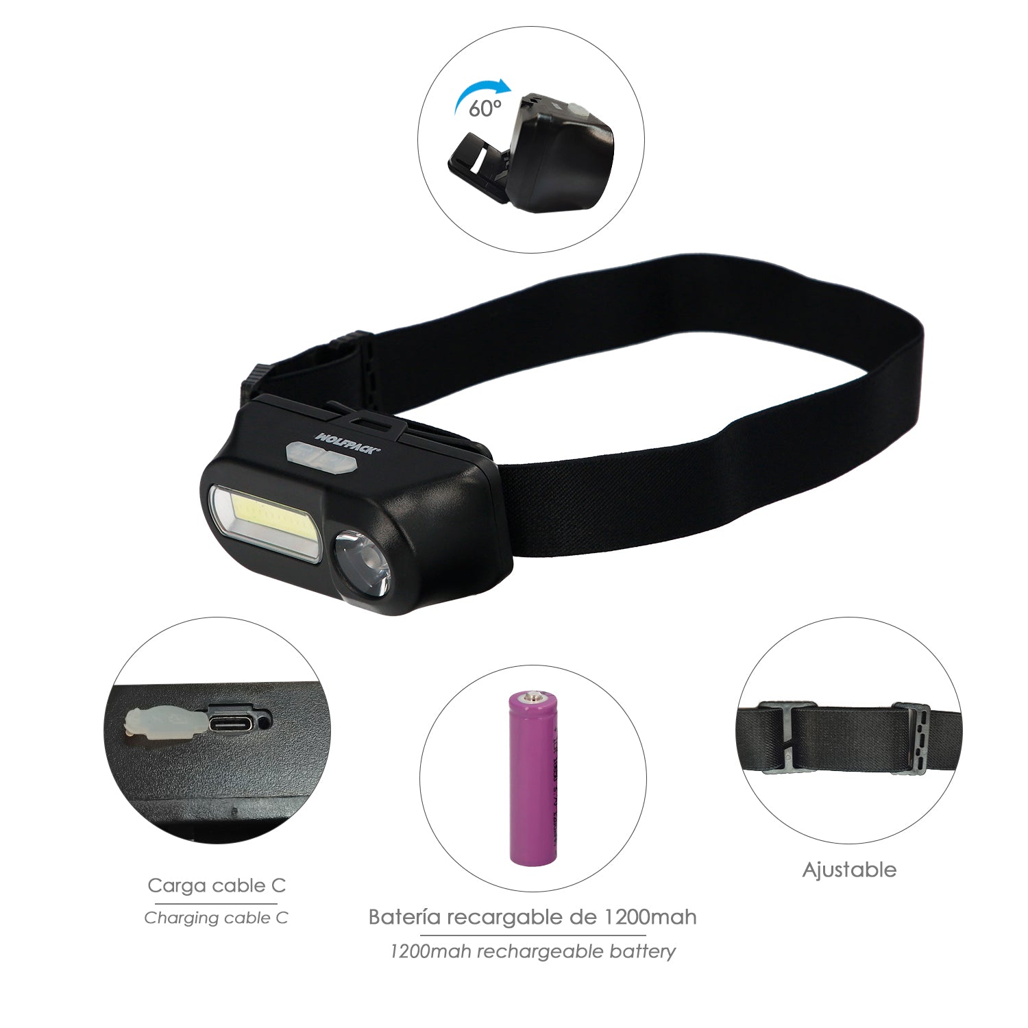 Adjustable LED Headlamp 350 Lumens 4 Modes, Adjustable Strap, 3 light modes. Strong, medium and flash. 1200Mah